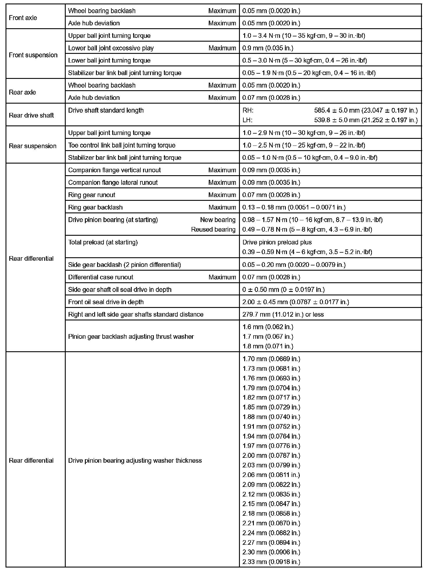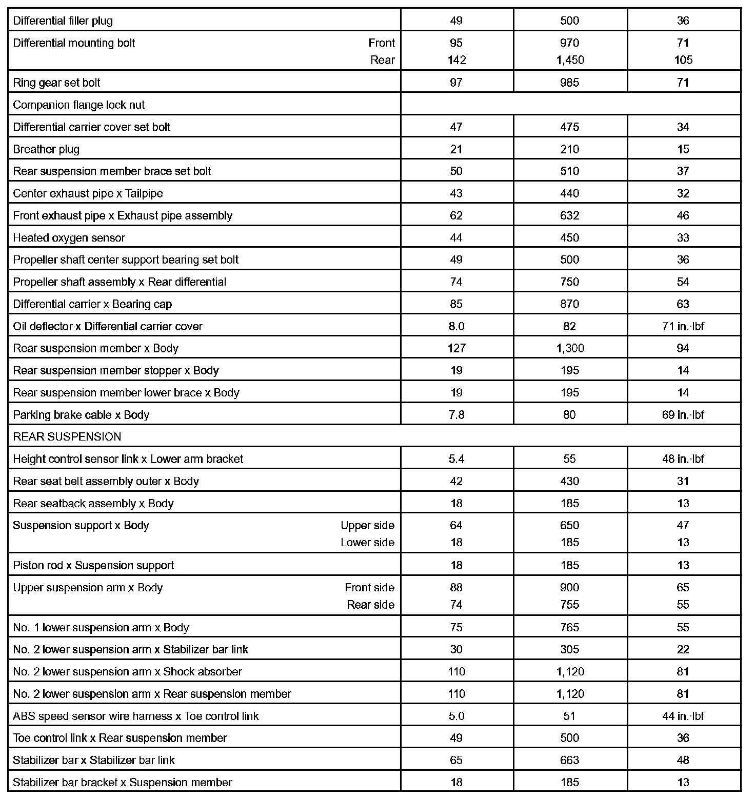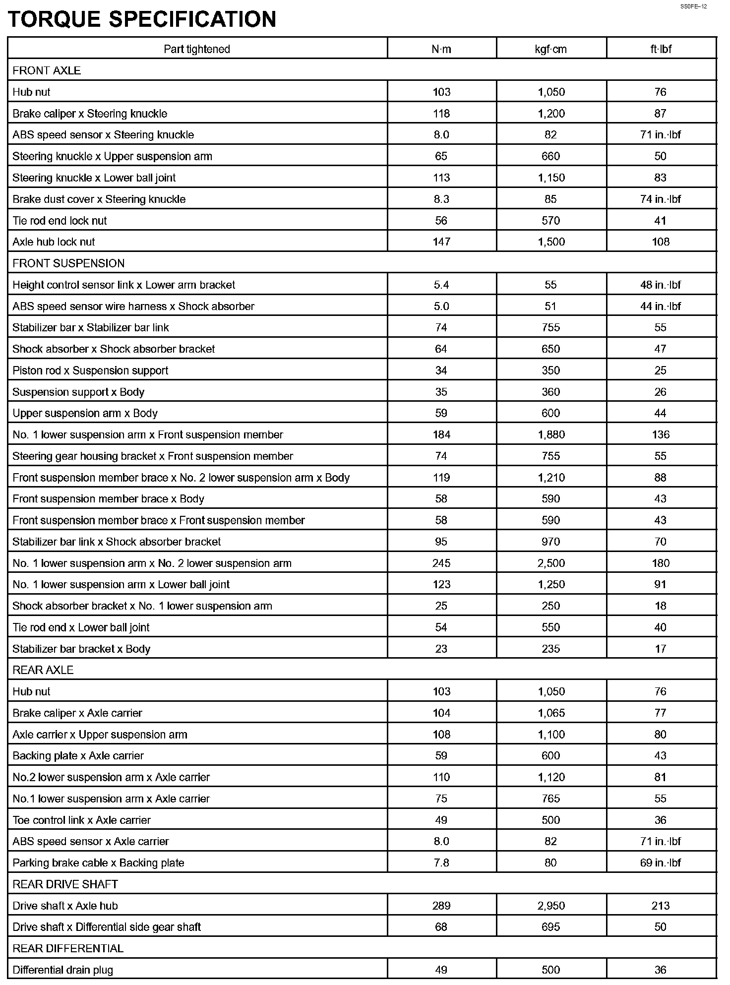 Suspension And Axle - Torque Specification Part 1: