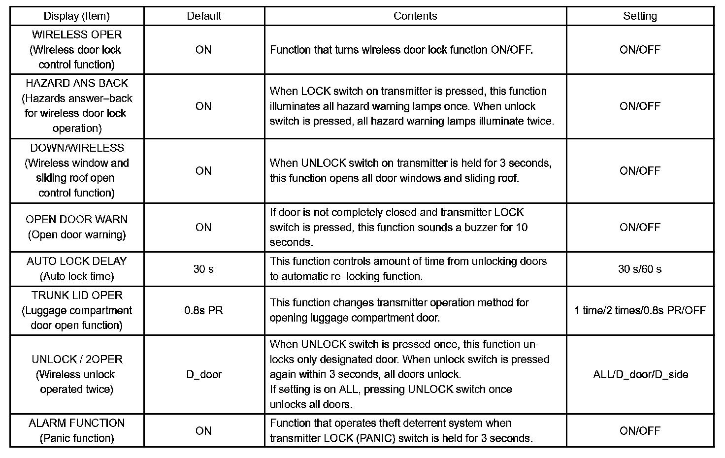 - When troubleshooting a function, first make sure that the function is not set to OFF. Wireless door lock: