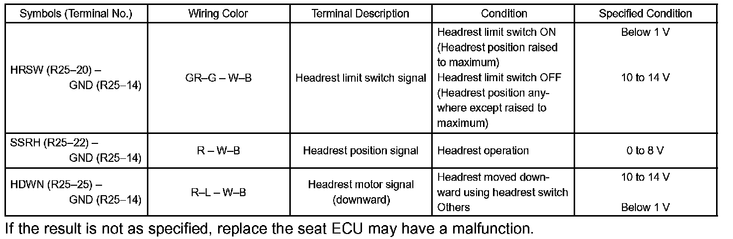 Terminals Of ECU / Pinouts - Check Rear RH Seat ECU: