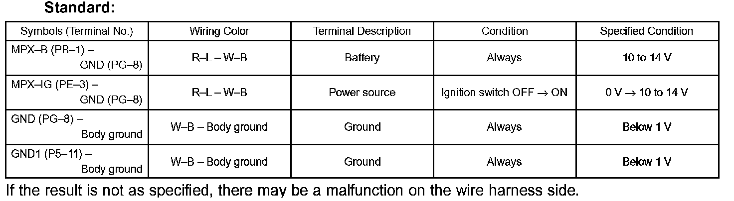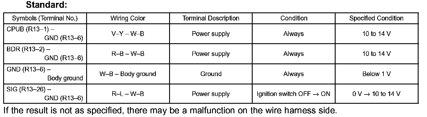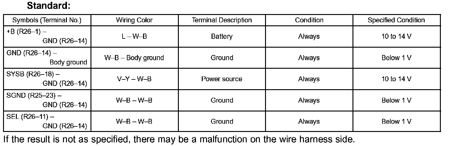 b. Measure the voltage of each terminal of the wire harness side connector.
