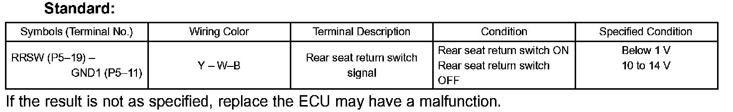 Terminals Of ECU / Pinouts - Check Rear Seat Control Switch: