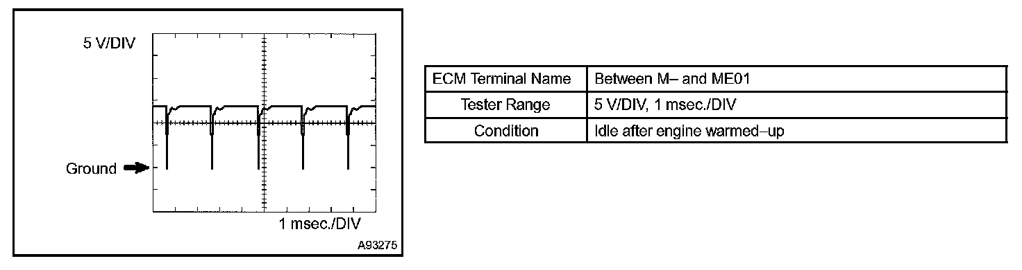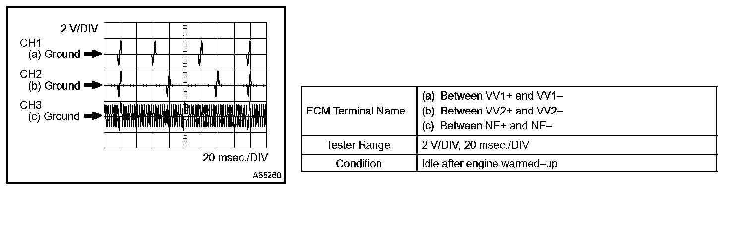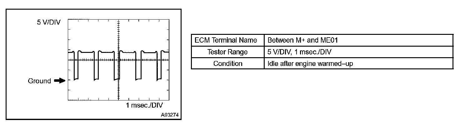 HINT: The wavelength becomes shorter as engine rpm increases. The waveforms and amplitudes displayed differ slightly depending on the vehicle.