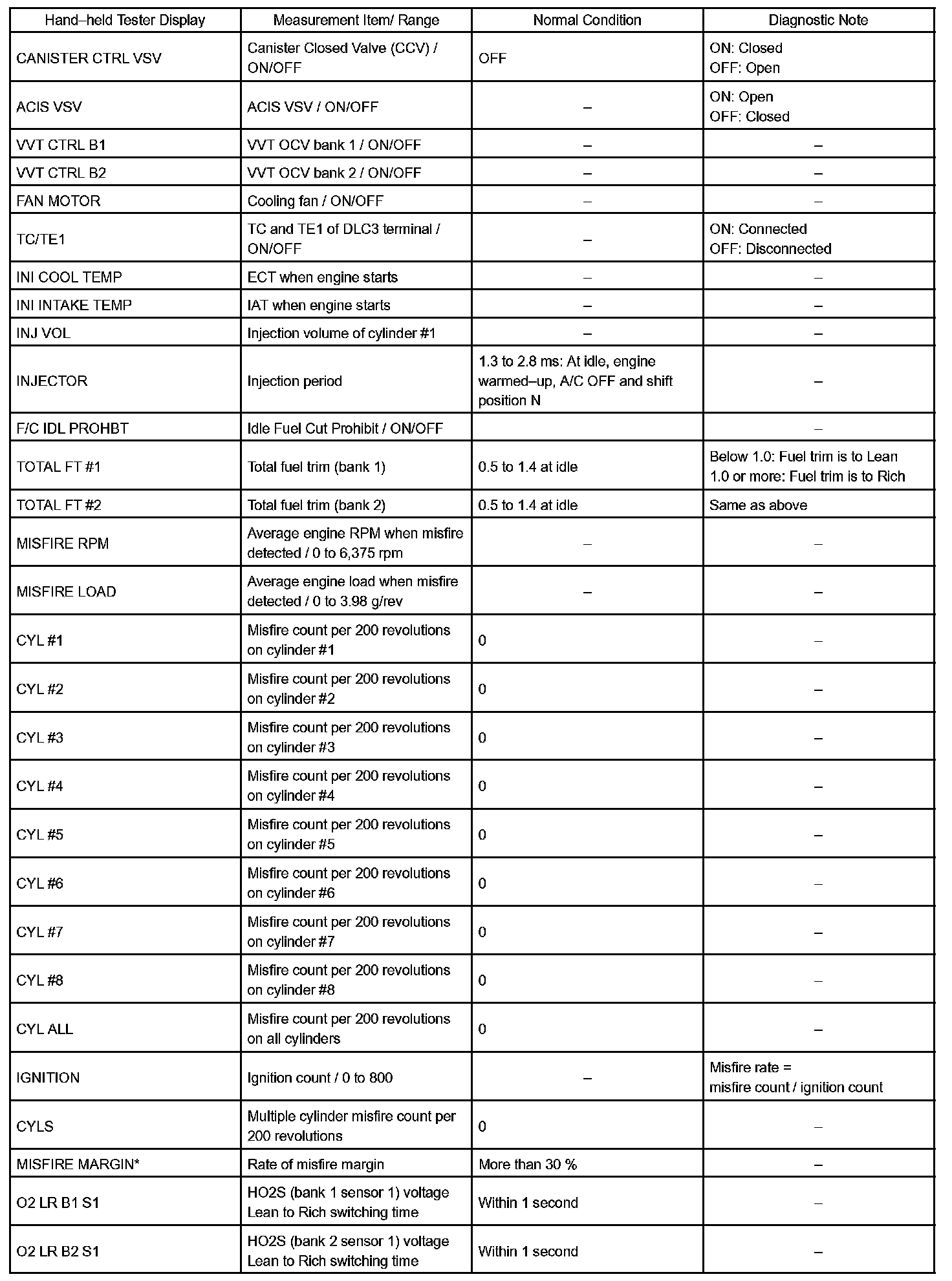 DATA LISTHINT: Using the hand-held tester's DATA LIST allows switch, sensor, actuator and other item values to be read without removing any parts. Reading the DATA LIST early in troubleshooting is one way to save time.