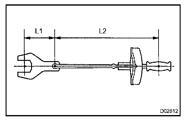 2. Use the formula below to calculate special torque values for situations where SST or an extension tool is combined with the torque wrench.