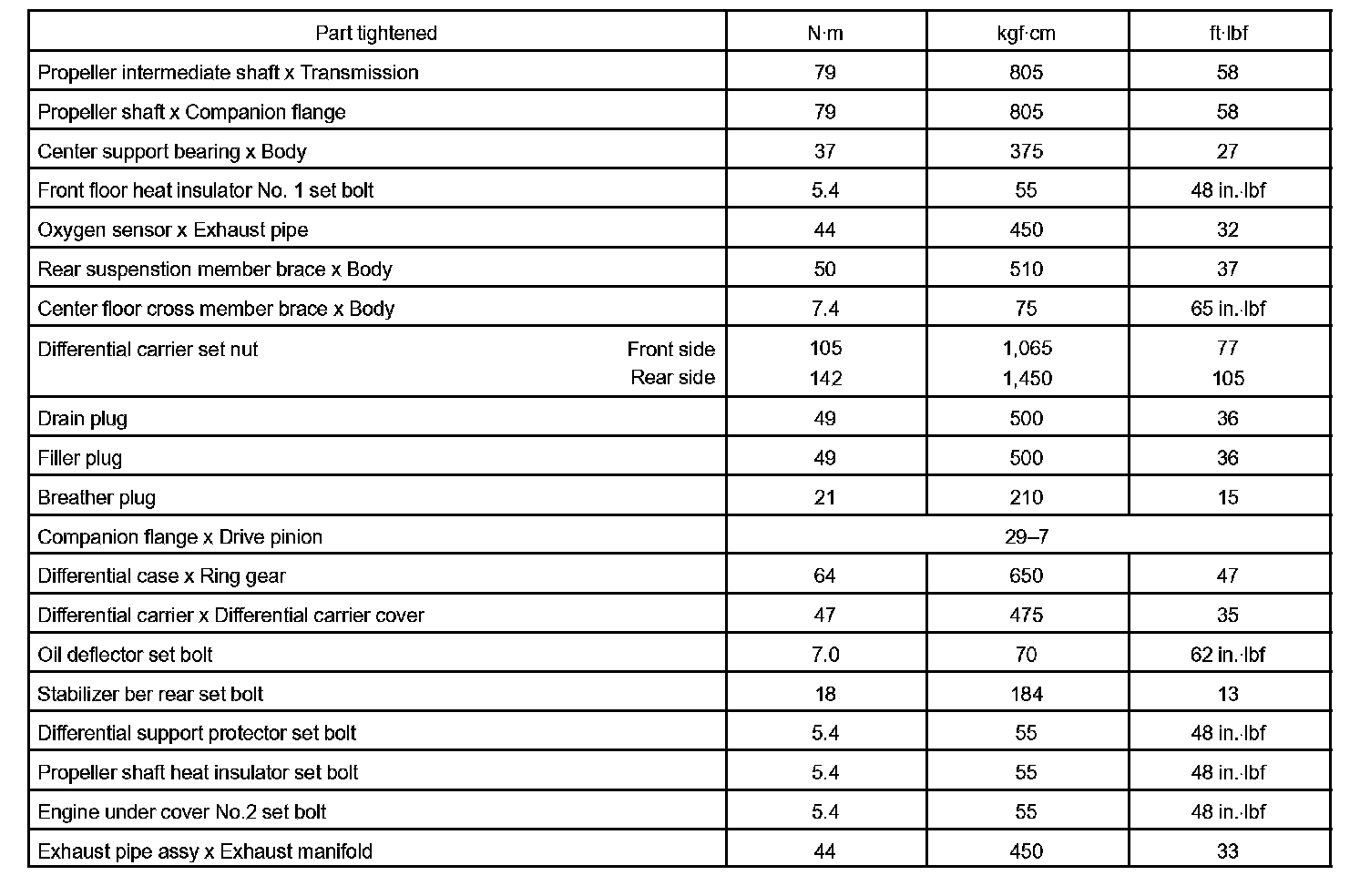 Torque Specification
