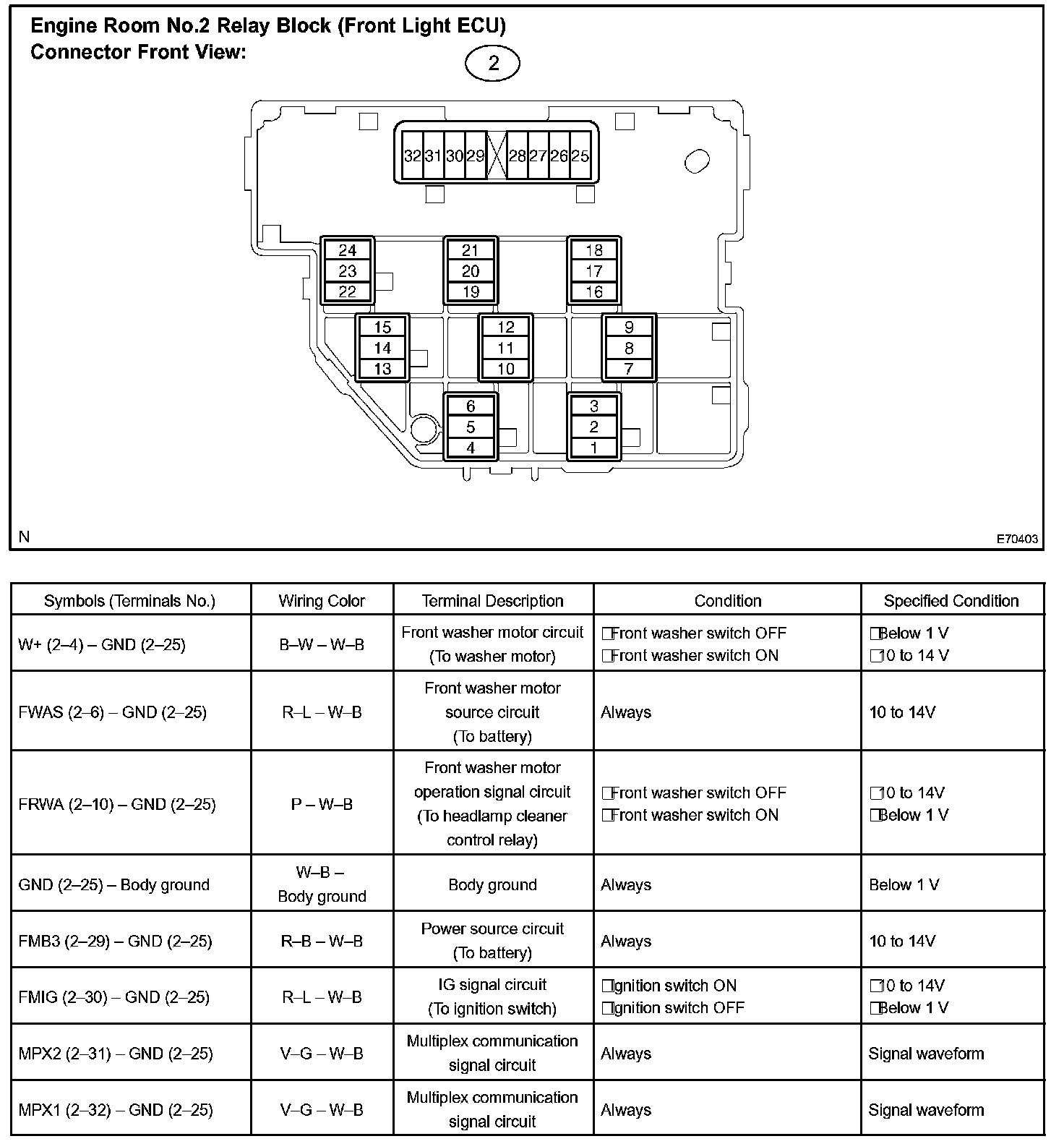 TERMINALS OF ECUTerminals Of ECU / Pinouts - Engine Room No.2 Relay Block: