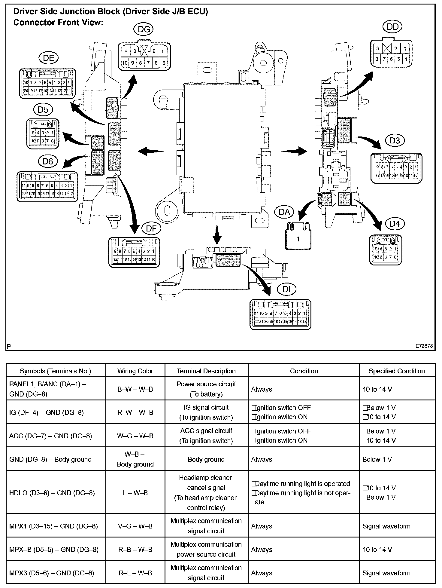 Terminals Of ECU / Pinouts - Driver Side Junction Block Part 1: