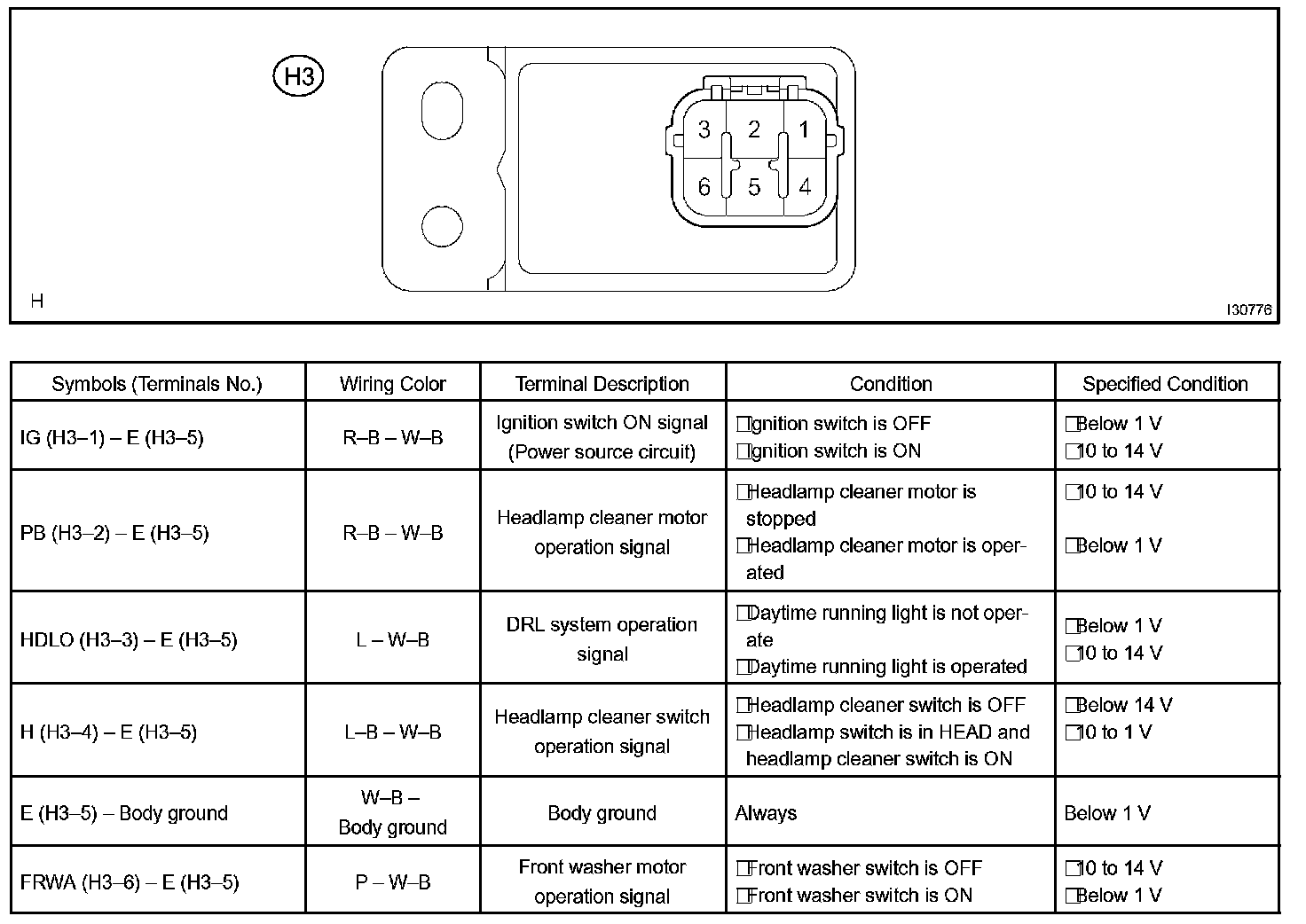 Terminals Of ECU / Pinouts - Headlamp Cleaner Control Relay: