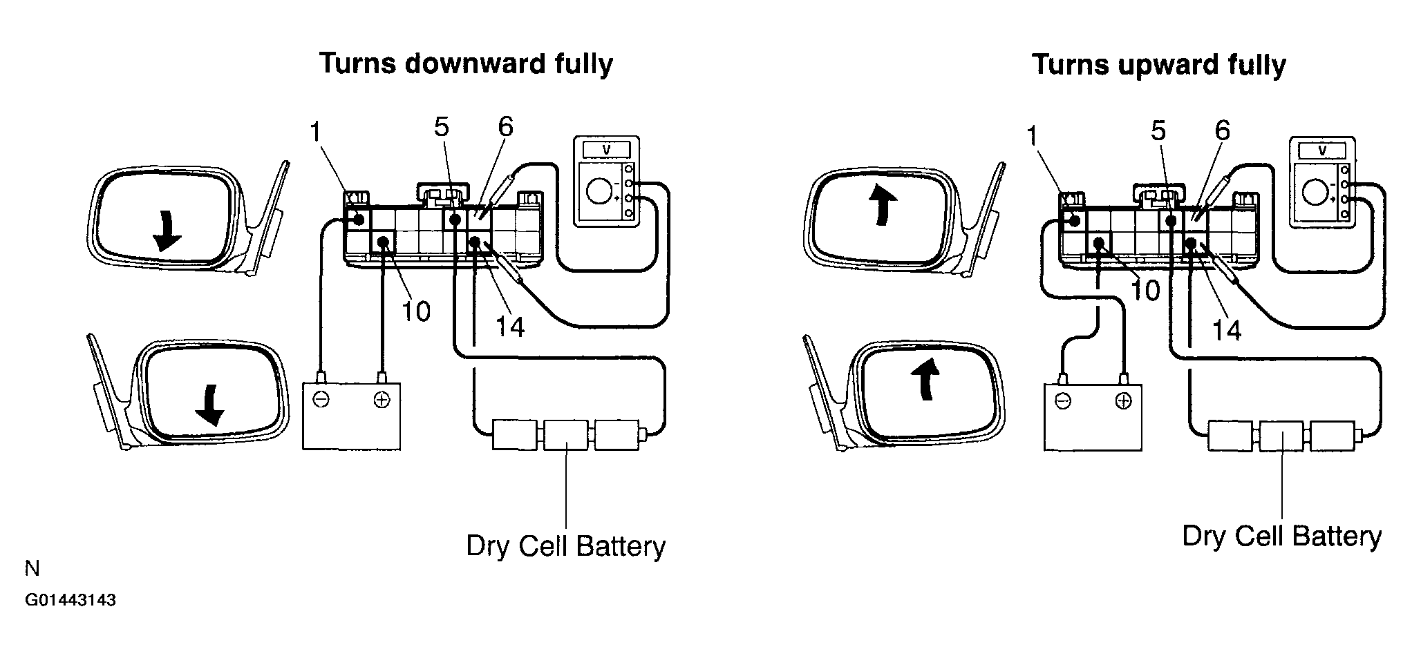- Measure the voltage while the mirror moves between the fully turned downward position and fully turned upward positions.