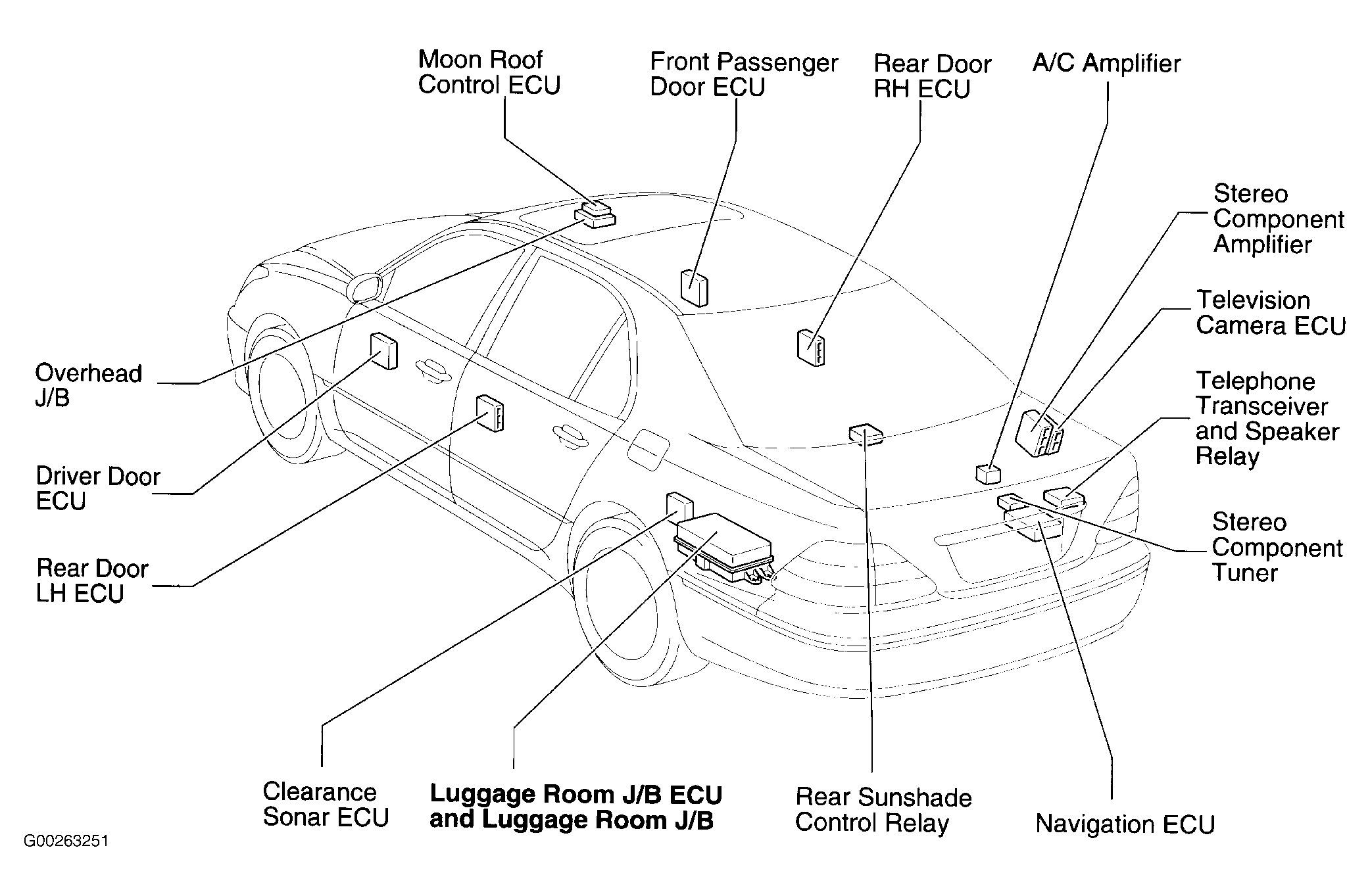 Luggage Room J/B On left side of luggage compartment. See Figure.