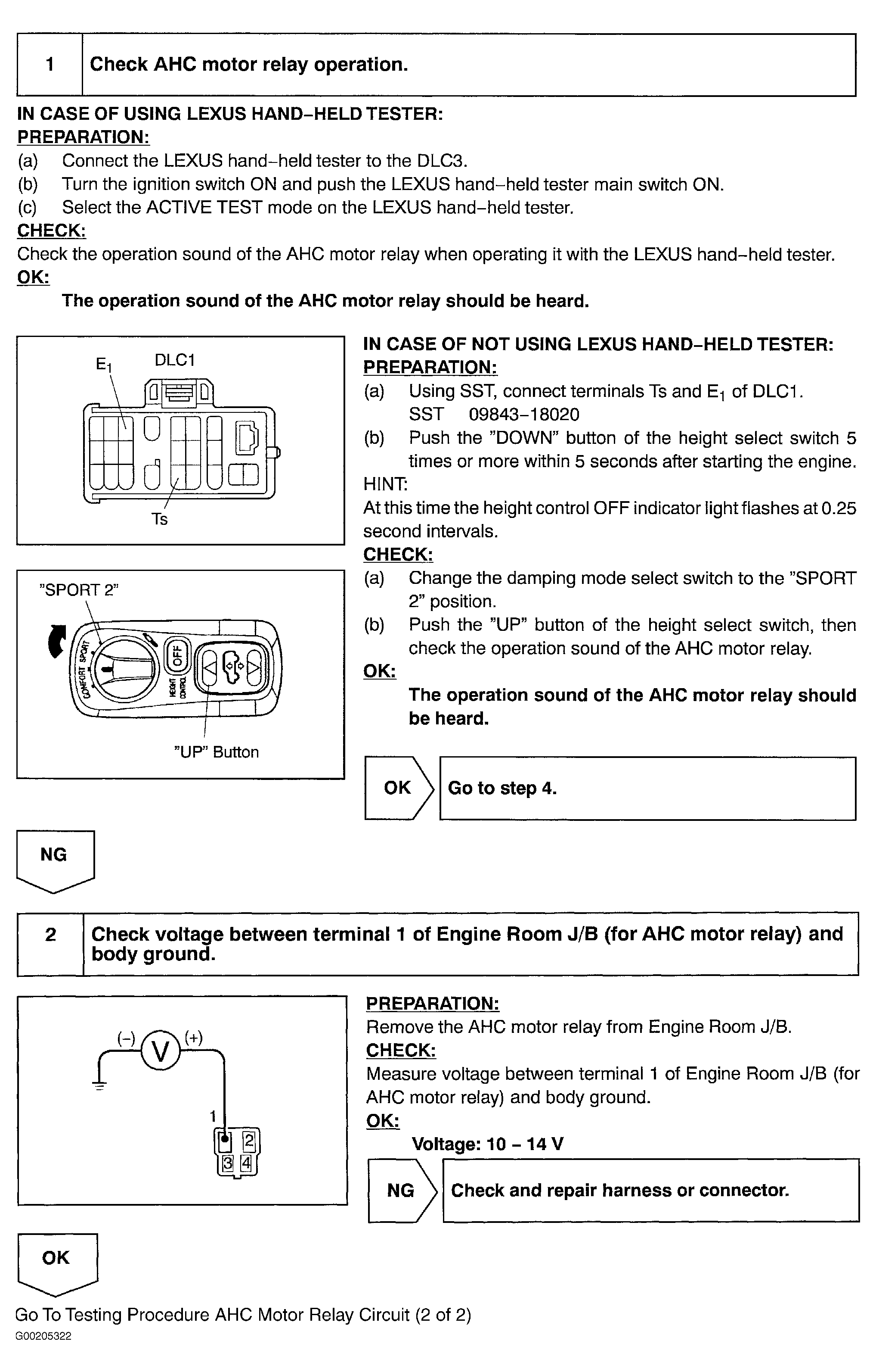 Fig 2: Testing Procedure AHC Motor Relay Circuit (1 Of 2)