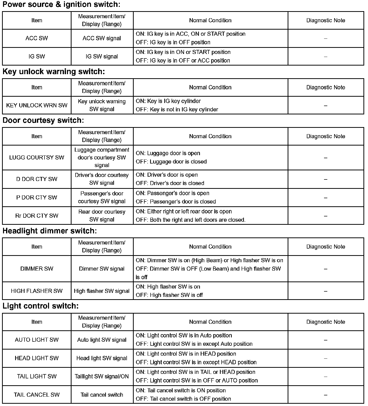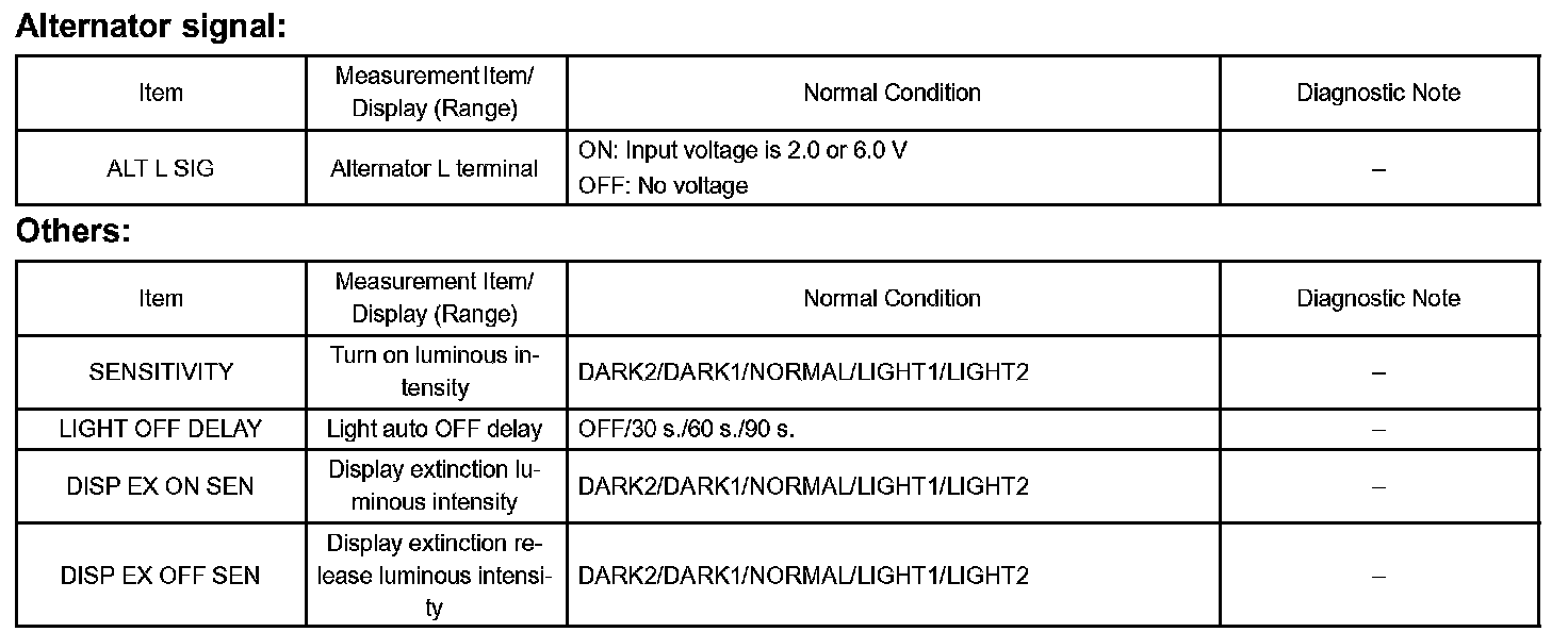 DATA LISTHINT: By the DATA LIST displayed on the hand-held tester, you can read the value of the switch, sensor, actuator and so on without removing any parts. Reading the DATA LIST as a first step of troubleshooting is one of the method to shorten the labor time.