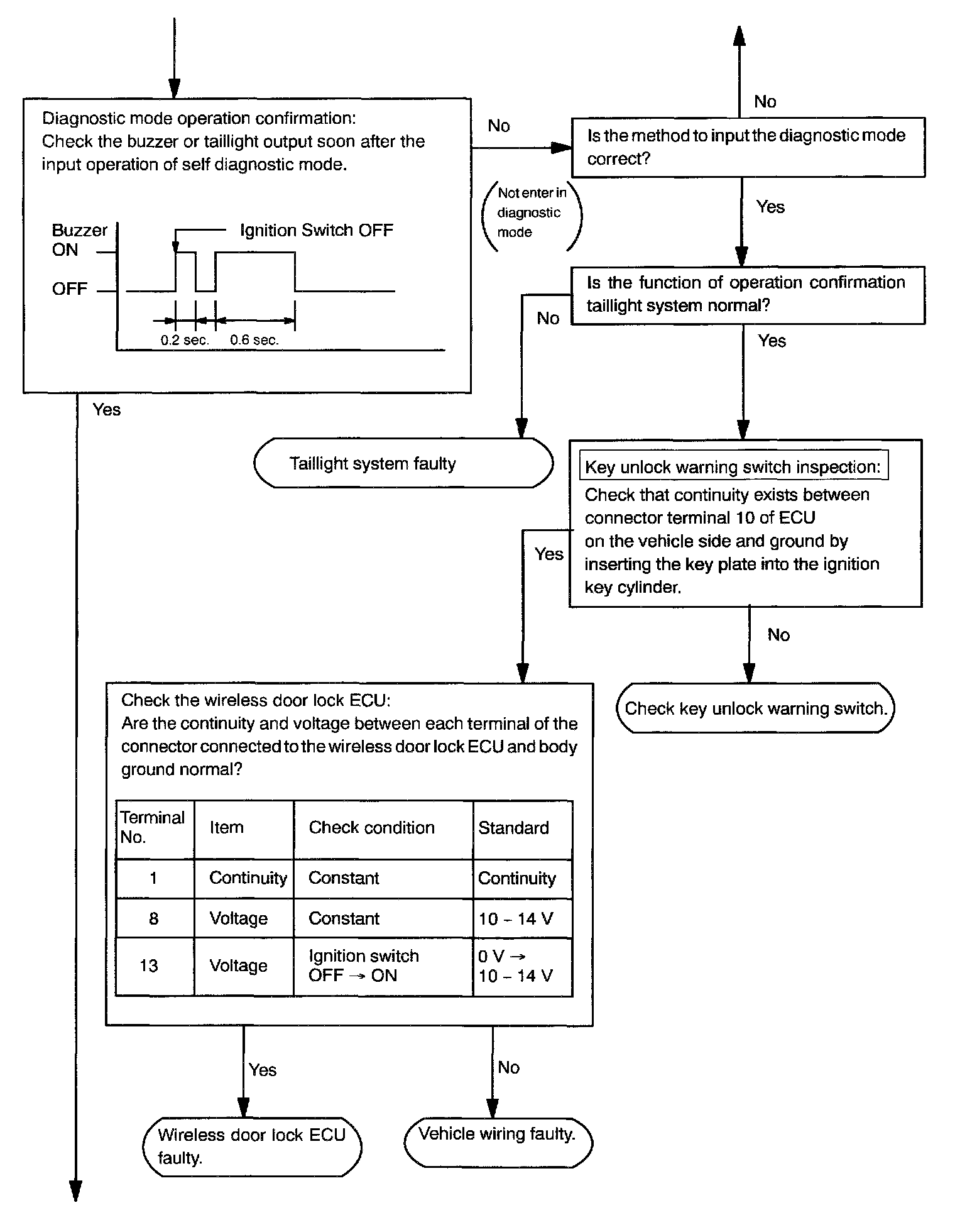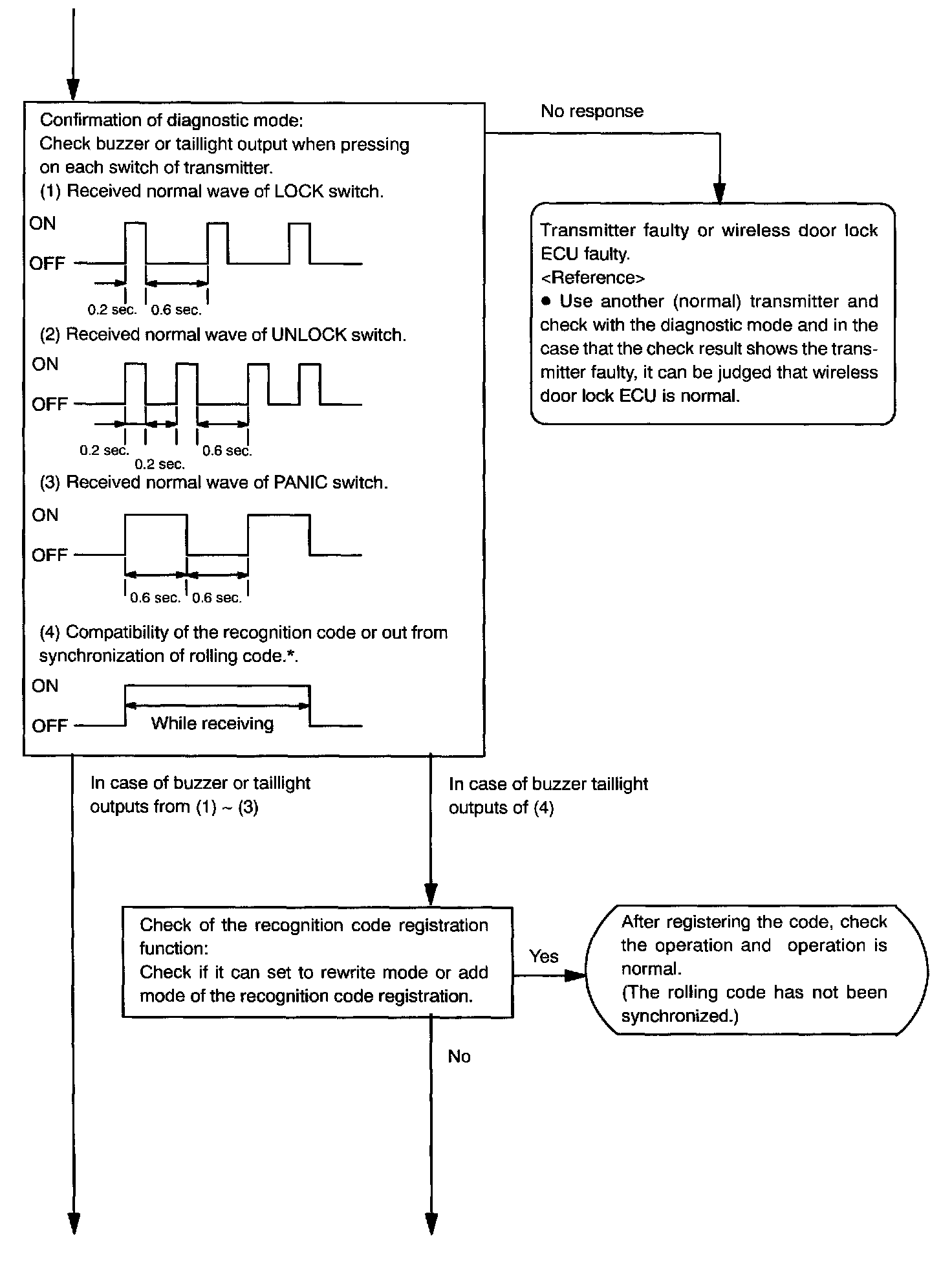 b. Follow the charts shown above to register the transmitter recognition code at the wireless door lock control receiver.