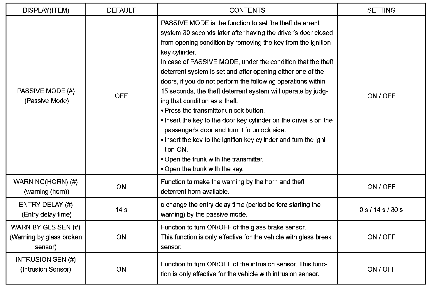 - Among the following contents, the make-indicated(#) items should not be know to users.