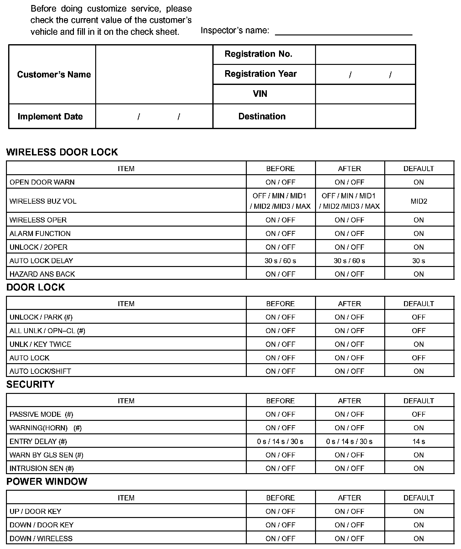 - Be sure to record the current value before customizing. (You can use the attached customize check sheet.)