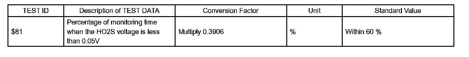 2. Find the Conversion Factor value of "TIME $81" in the O2S TEST RESULT chart. 0.3906 is specified for $81 in this chart.