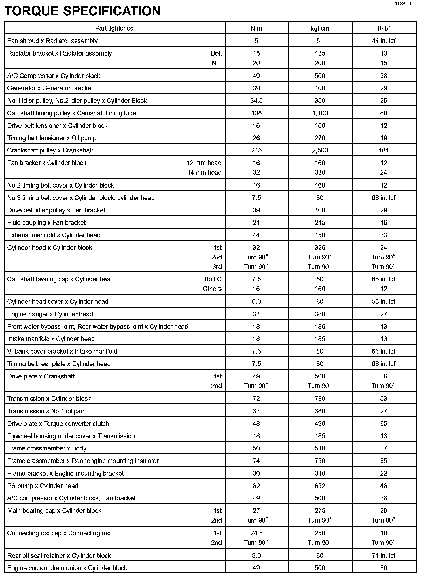 Engine Mechanical - Torque Specification Part 1: