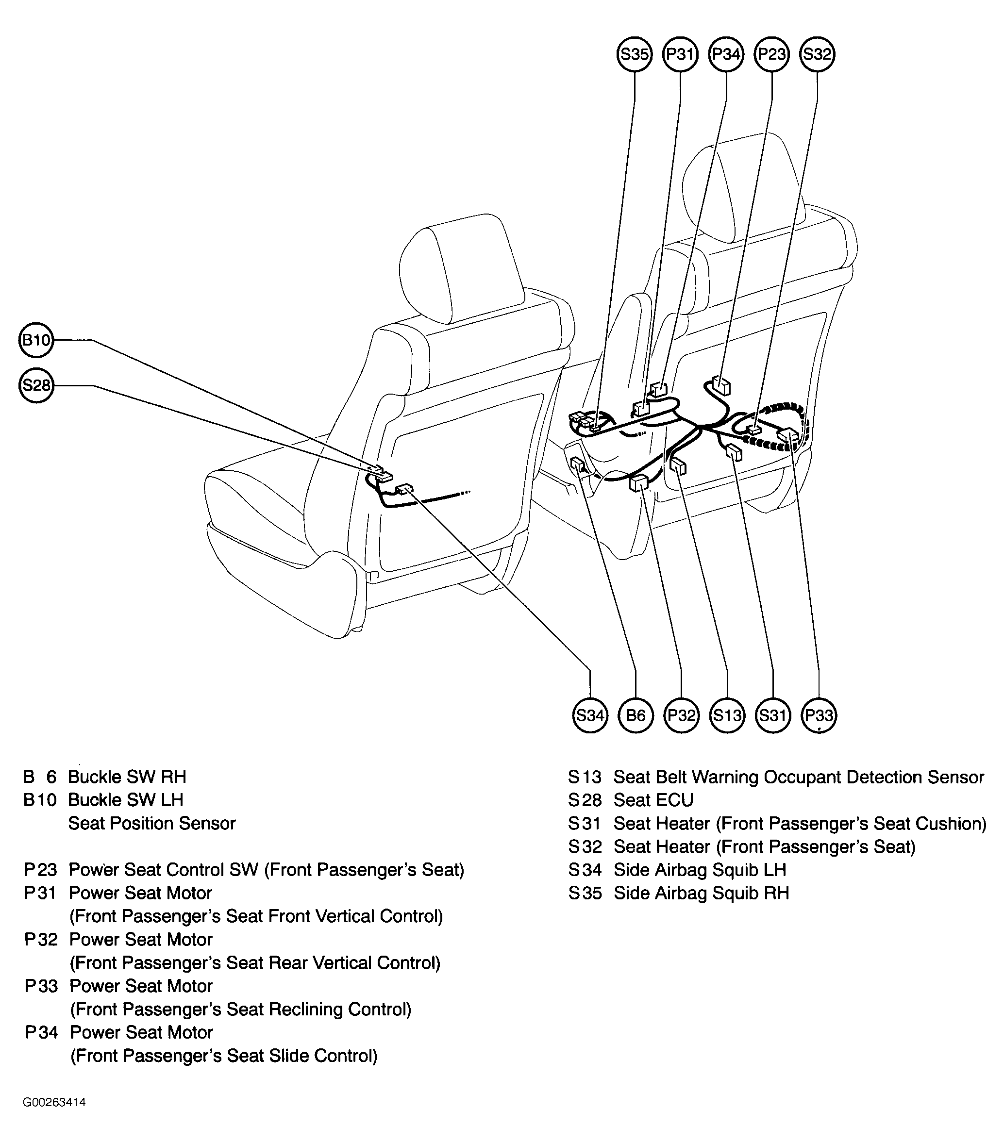 | Buckle Switch (Right) | In right front seat belt buckle. See Figure. |
