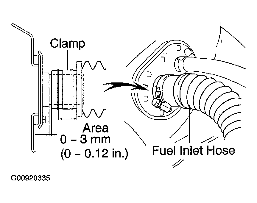 - Check the fuel tank vapor vent system hoses and all connections for looseness, sharp bends or damage.
