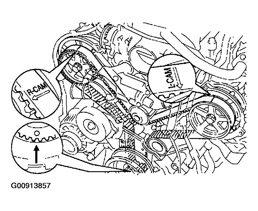 - Disconnect the timing belt from the camshaft timing pulleys.
