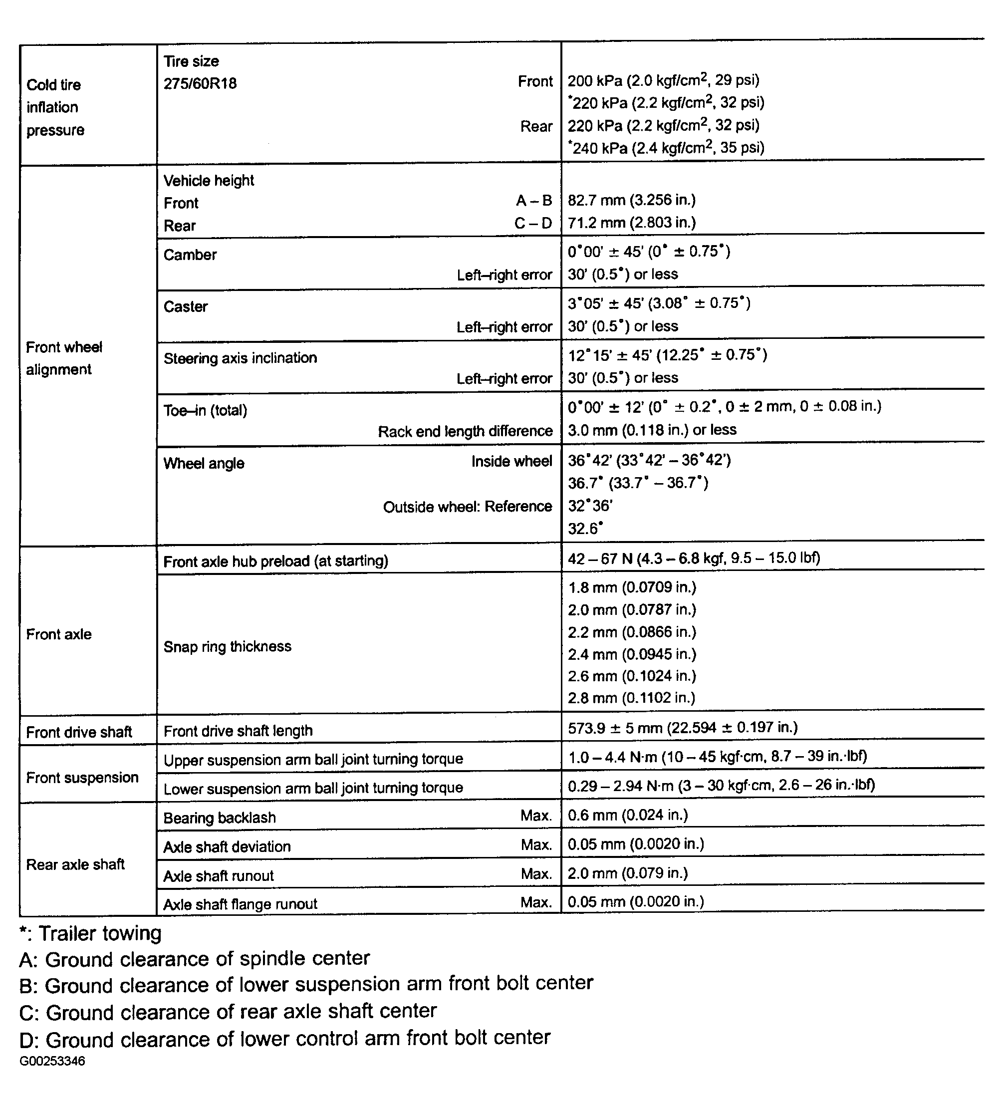 Home >> Lexus >> 2004 >> LX 470 >> Repair and Diagnosis >> Suspension >> Wheel Alignment >> Specifications & Procedures >> Specifications