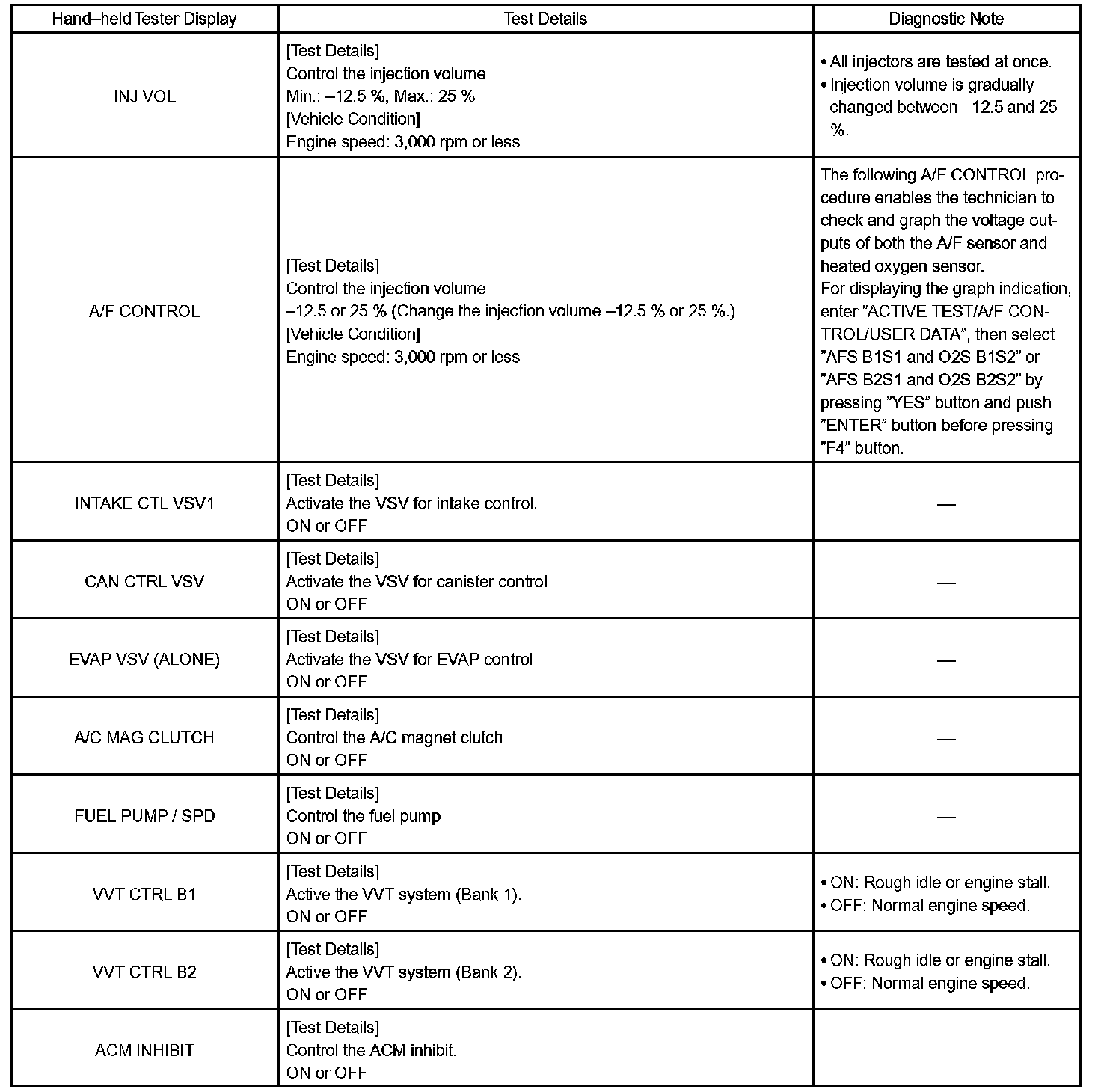ACTIVE TESTHINT: Performing the ACTIVE TEST using the hand-held tester or the OBD II scan tool allows the relay, VSV, actuator and so on to operate without parts removal. Performing the ACTIVE TEST as a first step of troubleshooting is one method to shorten diagnostic time.