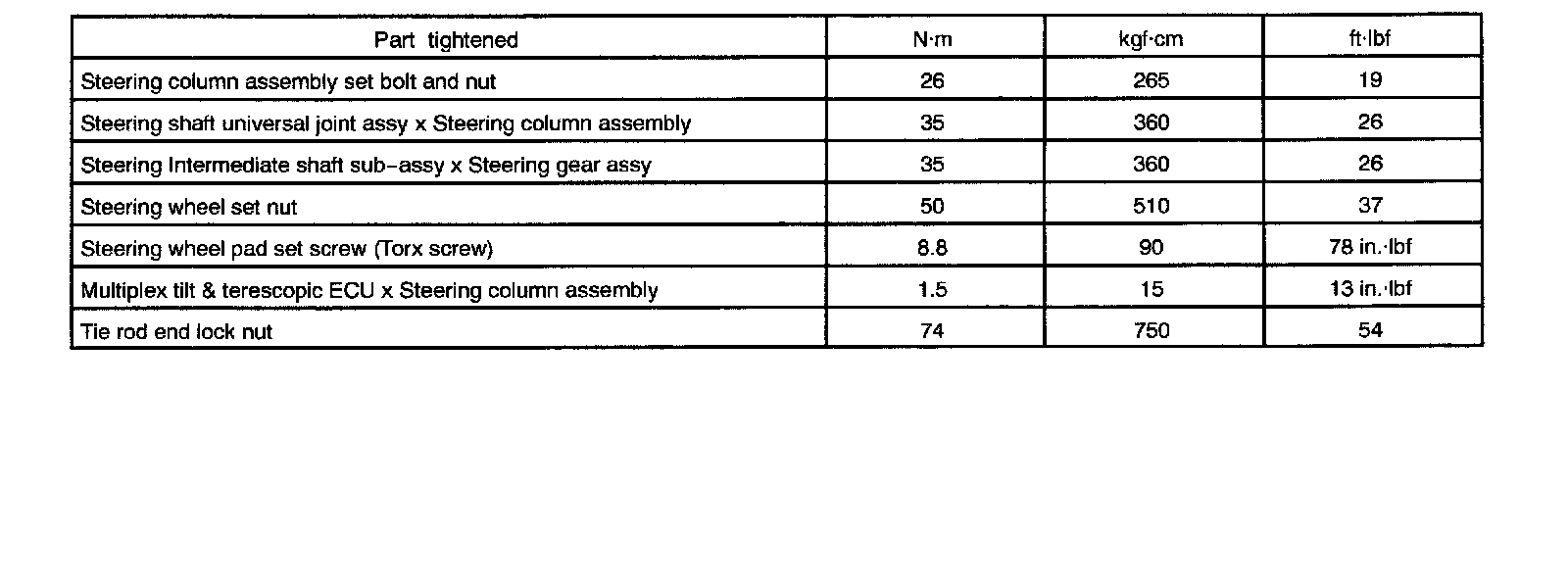 Torque Specification
