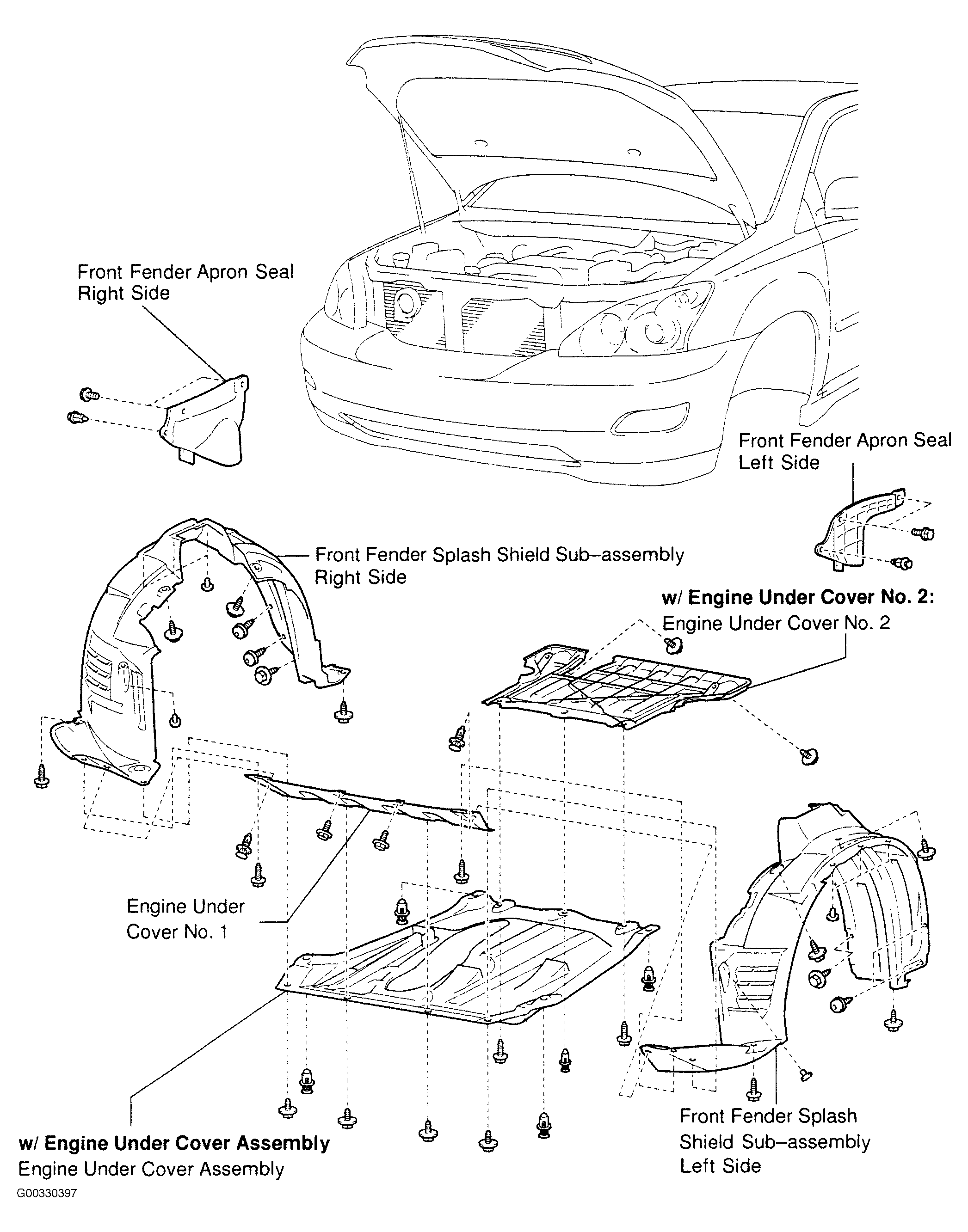 - Remove engine undercover No. 1 and 2, or undercover assembly. See Figure.