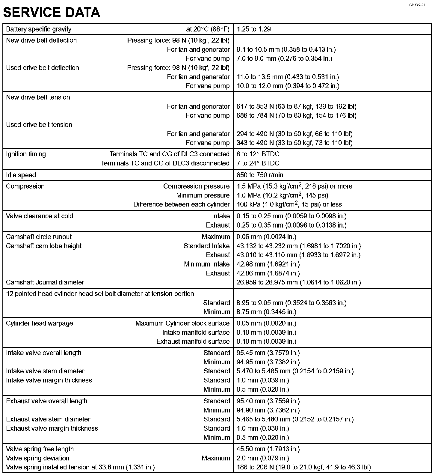 Engine Mechanical - Service Data Part 2: