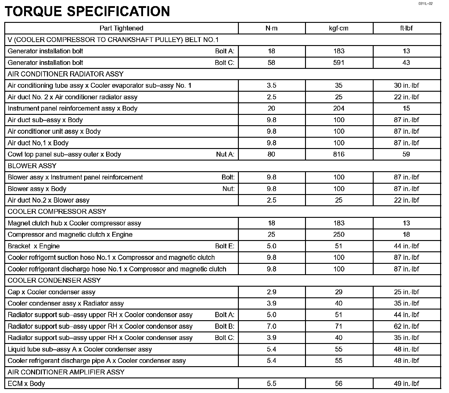 Heating & Air Conditioner - Torque Specification: