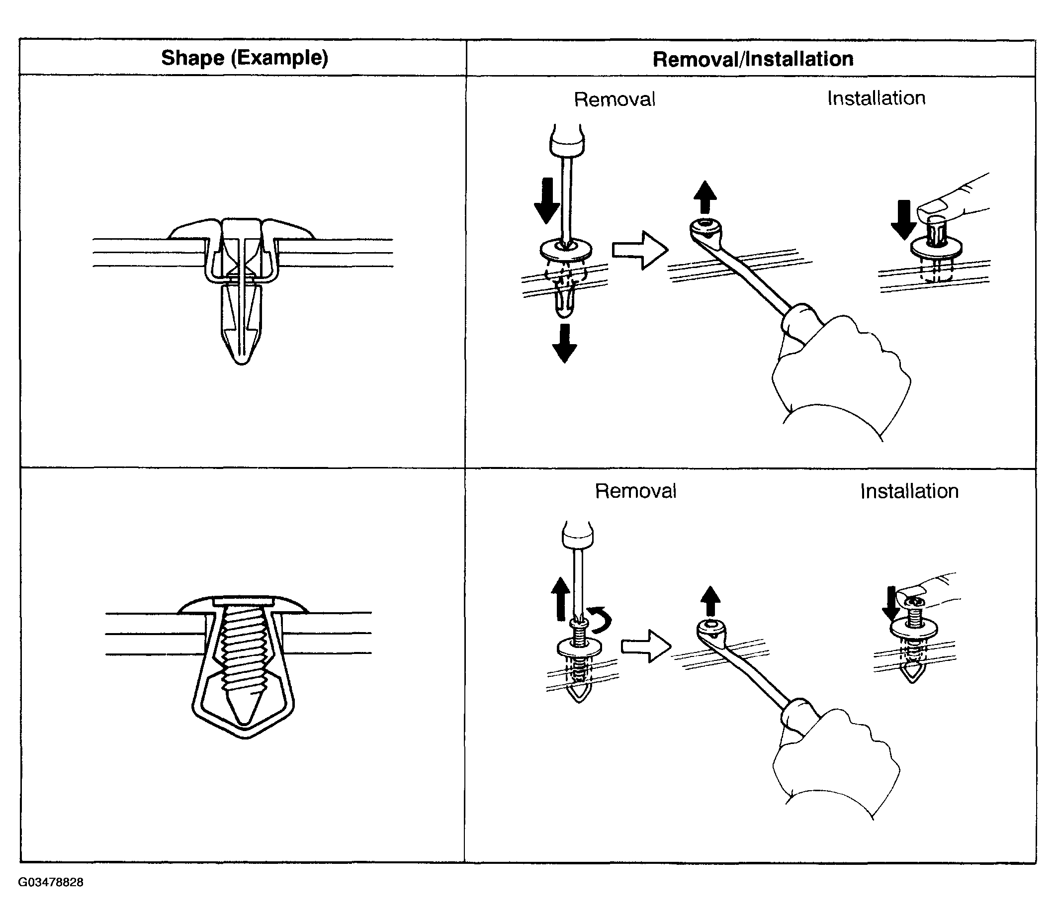 Fig 5: Identifying Removal And Installation Methods Of Typical Clips Used In Body Parts (1 Of 2)
