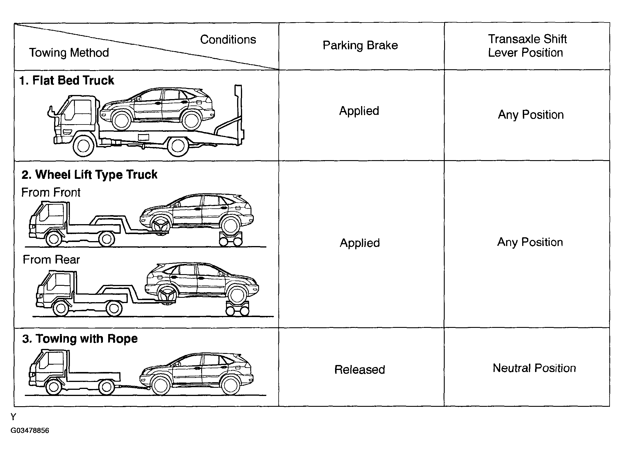 • If the vehicle has trouble with the chassis or drive train, use method 1 (flat bed truck).