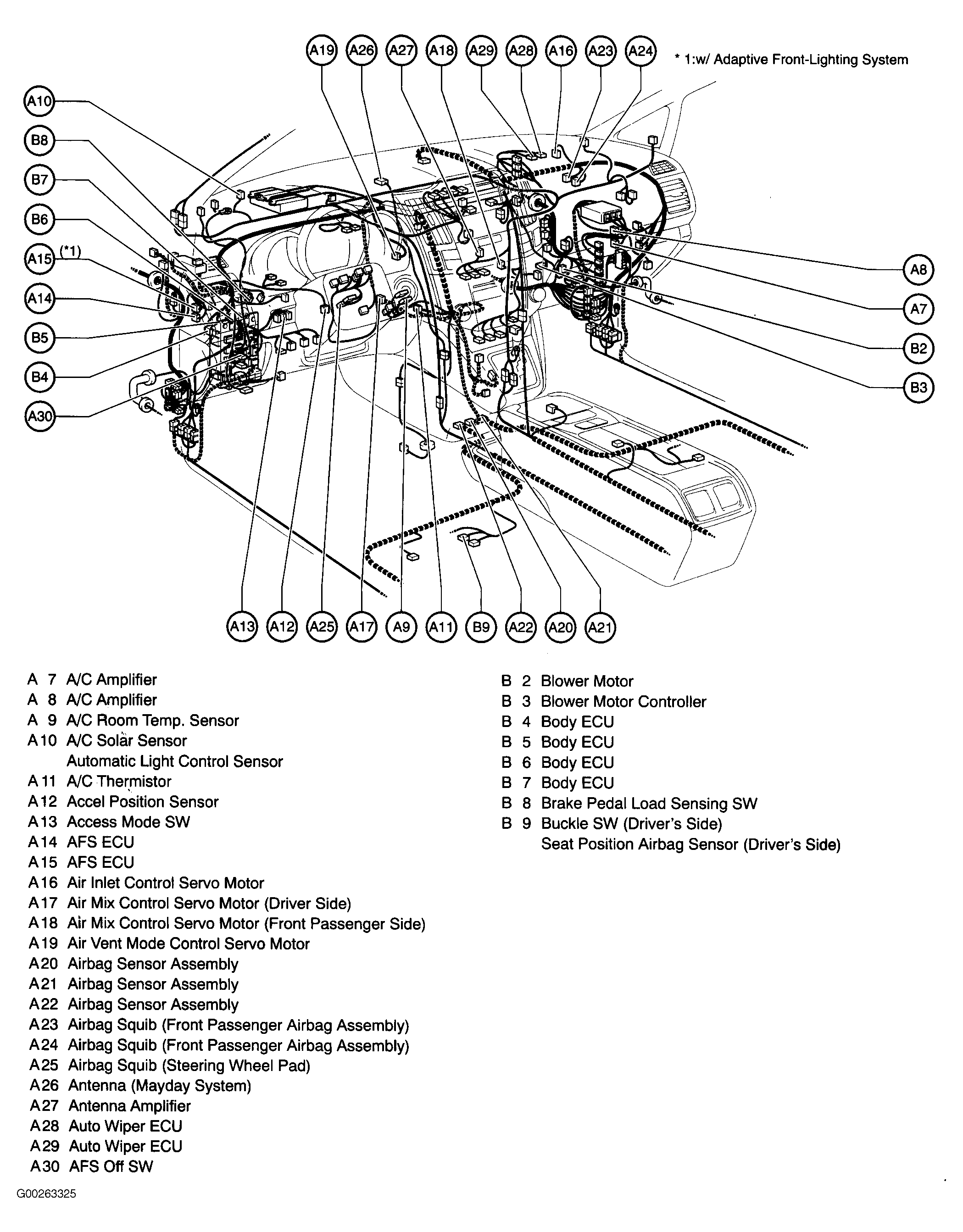 | AFS ECU | Left side of dash. See Figure. |