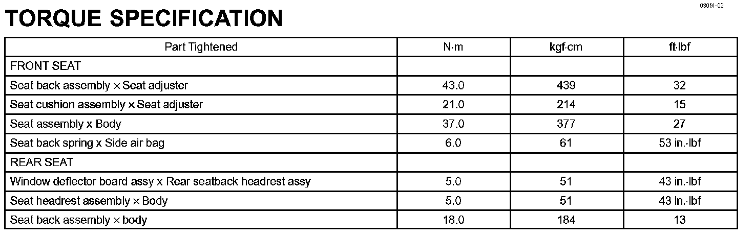 Seat - Torque Specification:
