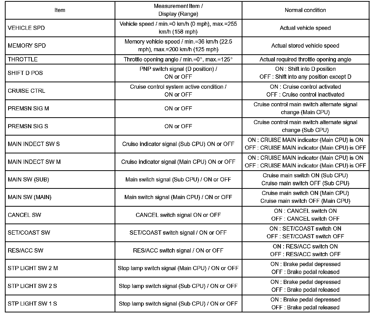 DATA LISTCRUISE CONTROL (ECM):