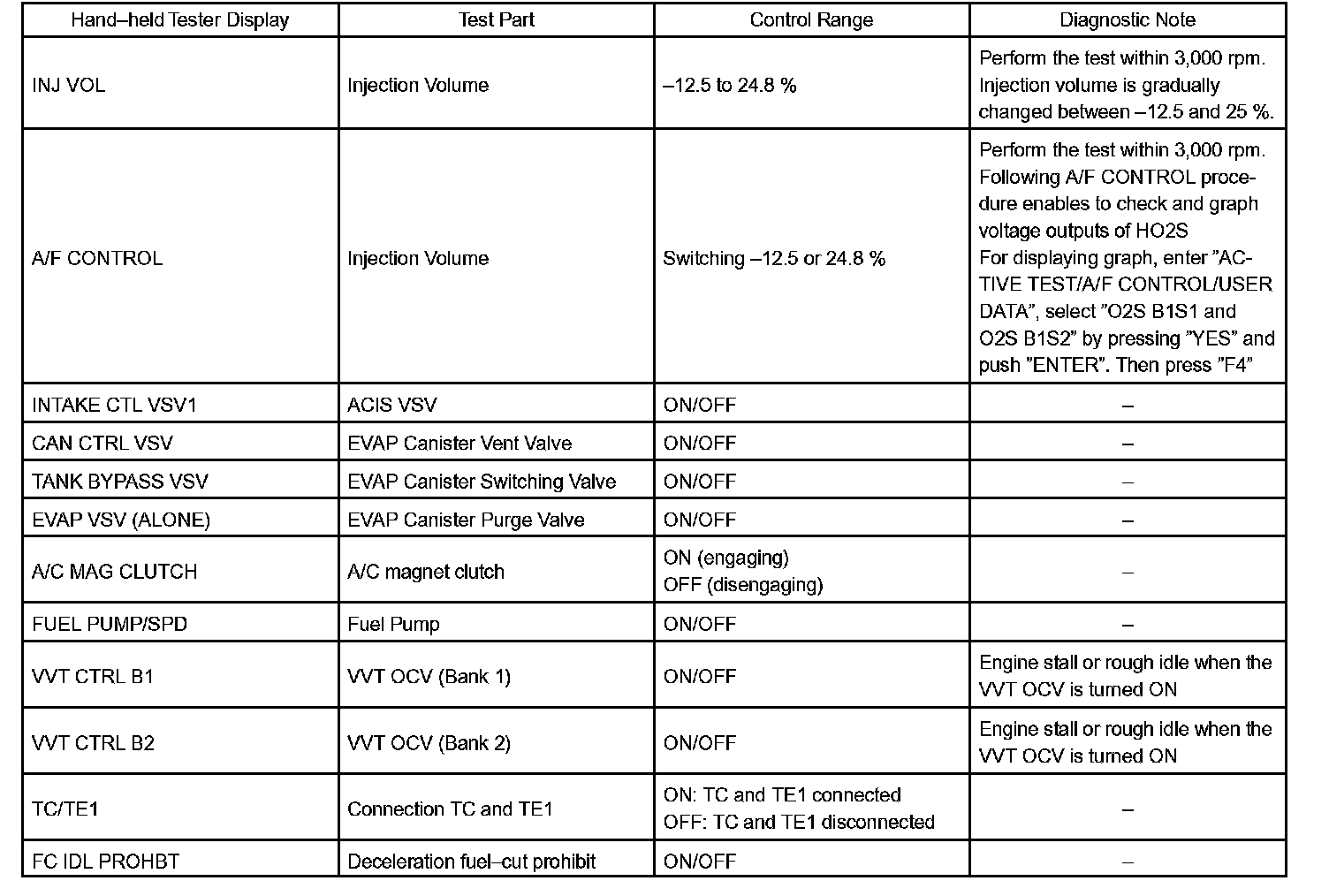 ACTIVE TESTHINT: Performing the hand-held tester ACTIVE TEST allows relay, vacuum switching valve (VSV), actuator and other items to be operated without removing any parts. Performing the ACTIVE TEST early in troubleshooting is one way to shorten labor time. The DATA LIST can be displayed during the ACTIVE TEST.