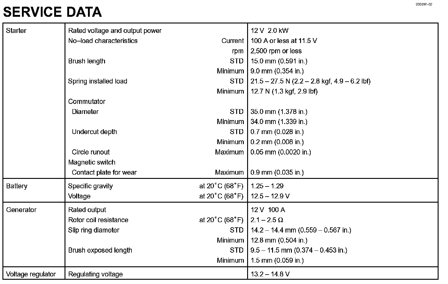 Starting & Charging - Service Data: