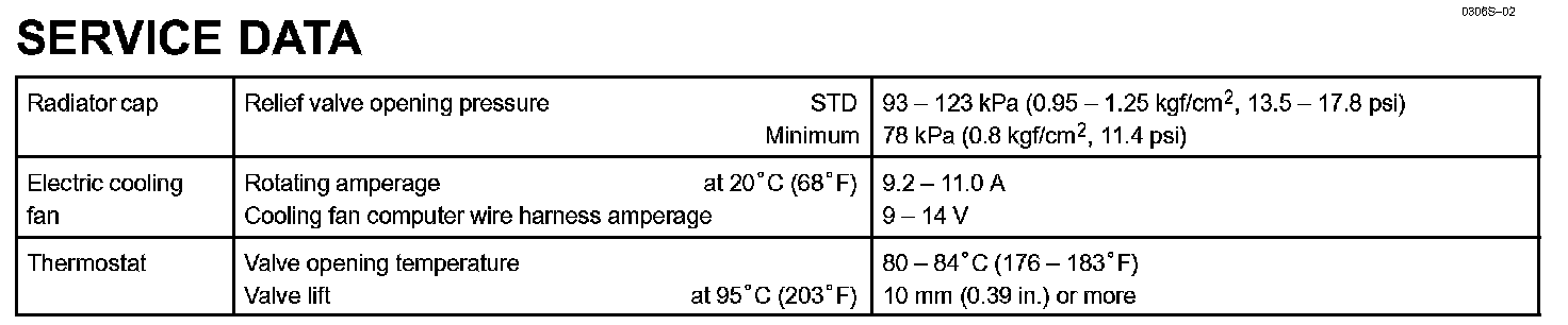 Cooling - Service Data: