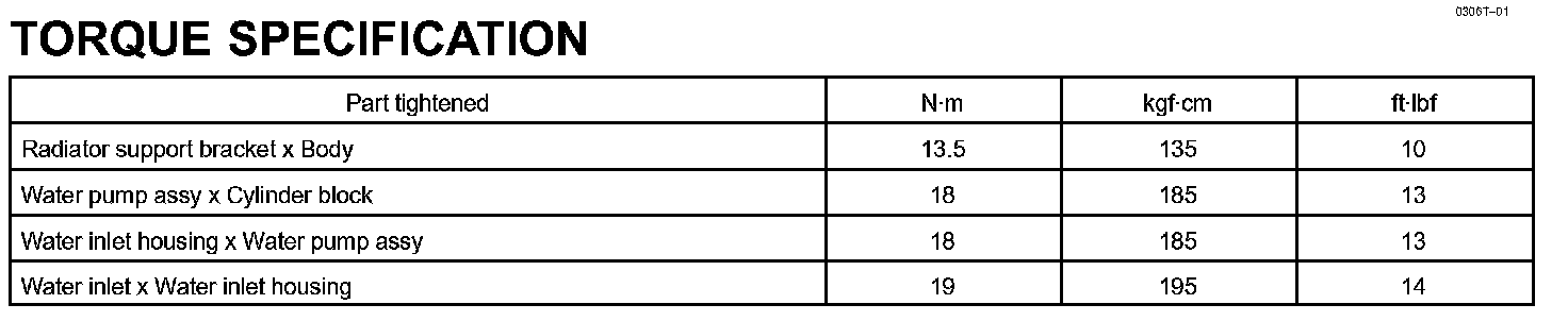 Cooling - Torque Specification: