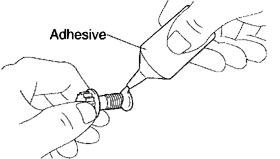 Apply adhesive to two or three of the threads of the mounting bolt end.