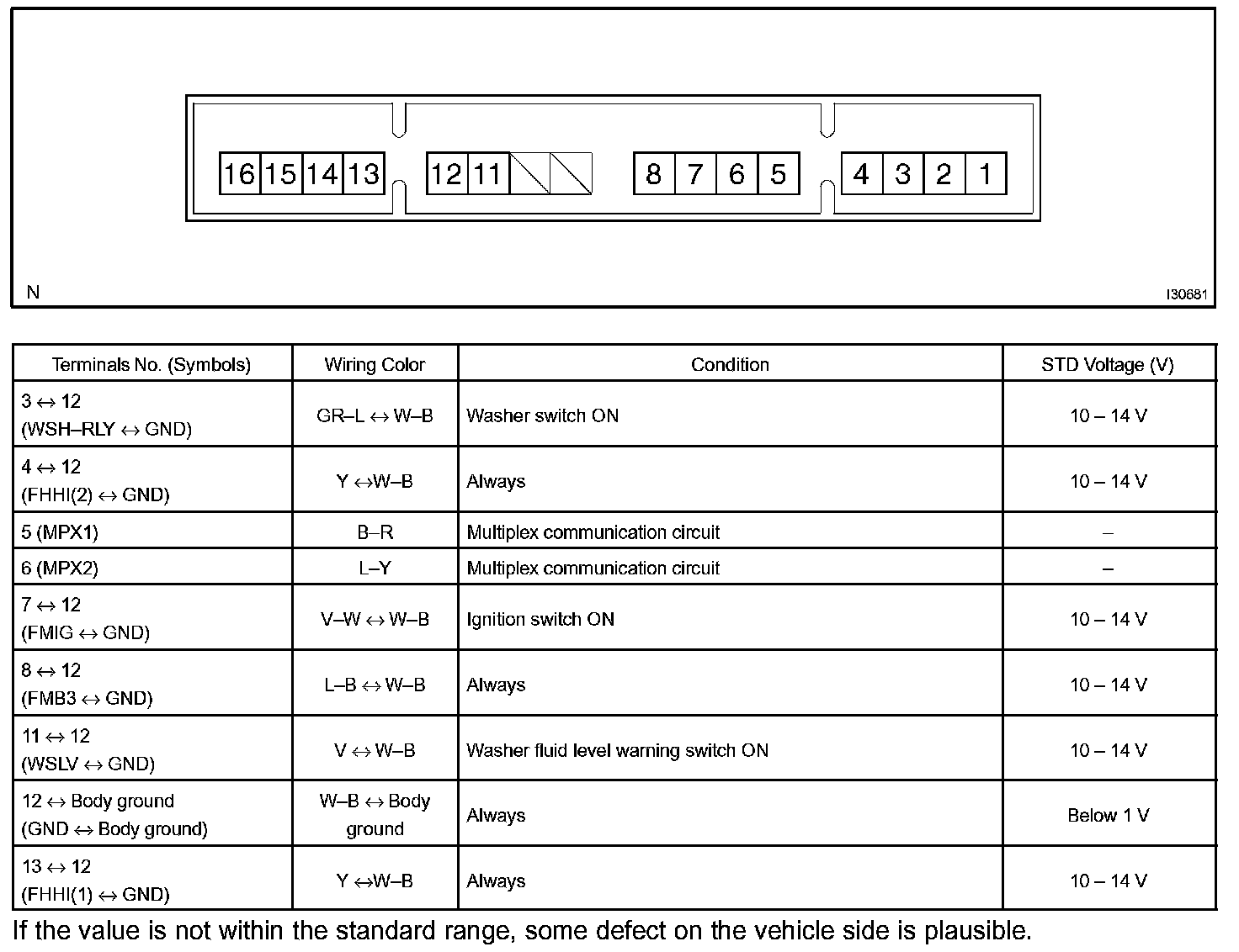 Terminals Of ECU/Pinouts - Headlight Cleaner Control Relay: