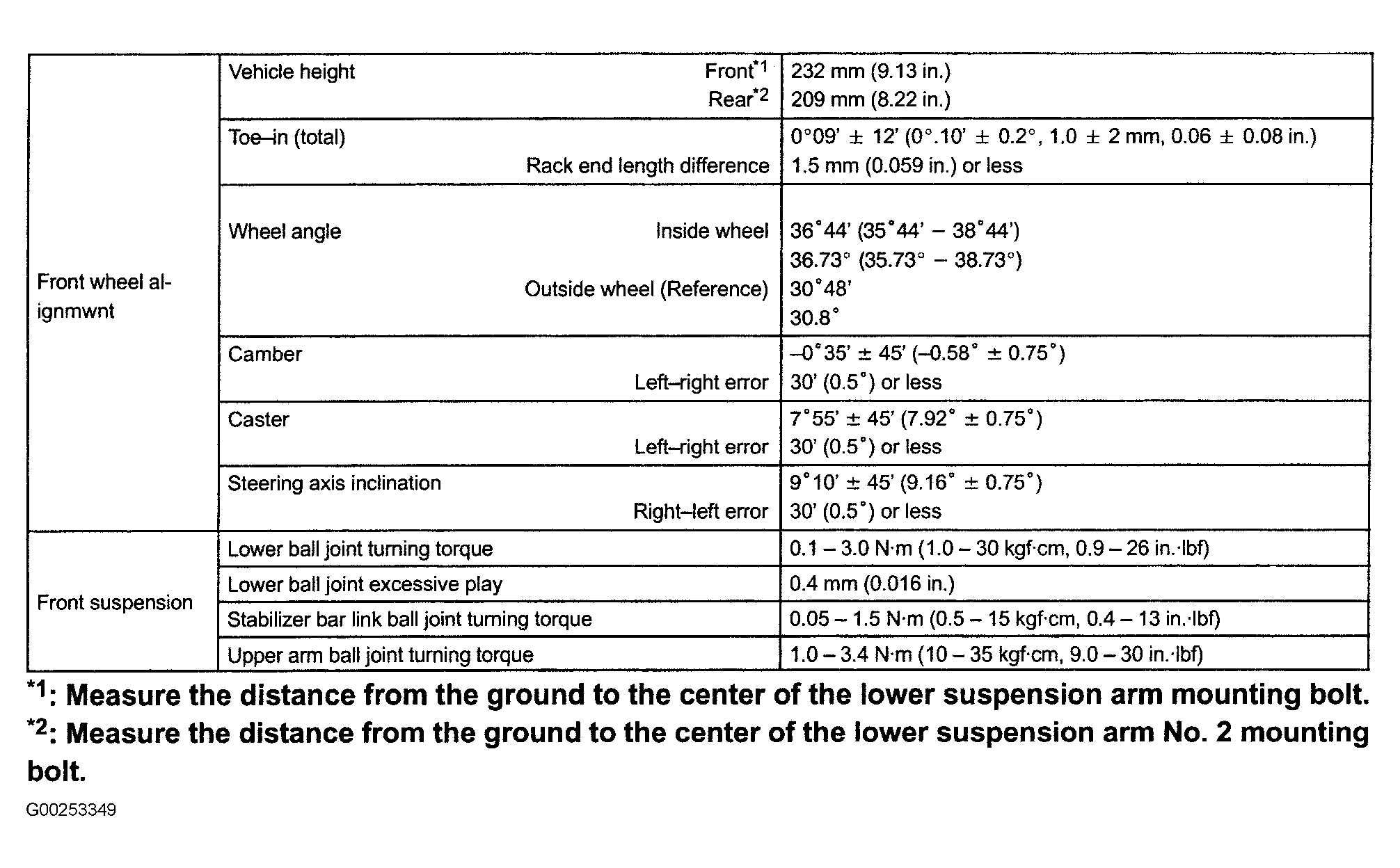 Fig 1: Front Wheel Alignment Specifications (SC 430)