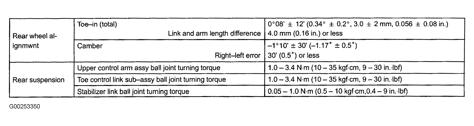 Fig 2: Rear Wheel Alignment Specifications (SC 430)