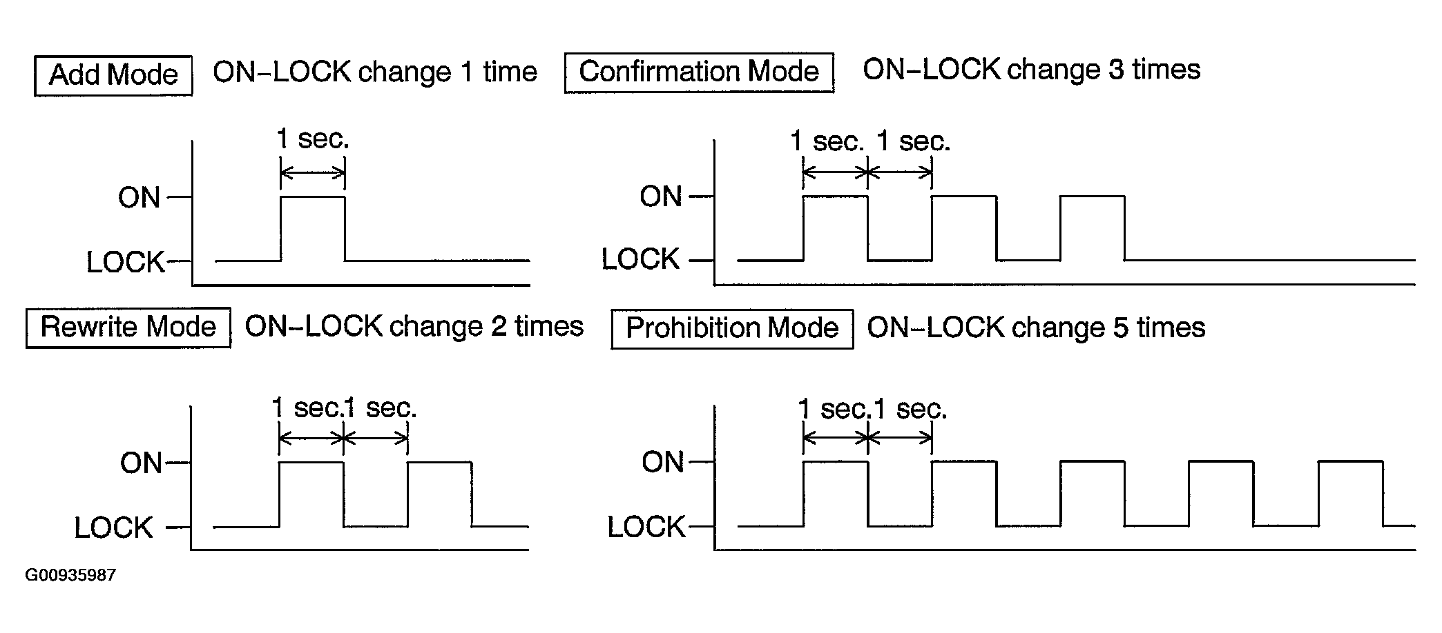 - Within 3 seconds after a mode has been selected, the theft warning ECU automatically performs LOCK-UNLOCK operation to inform the operator which mode has been selected.