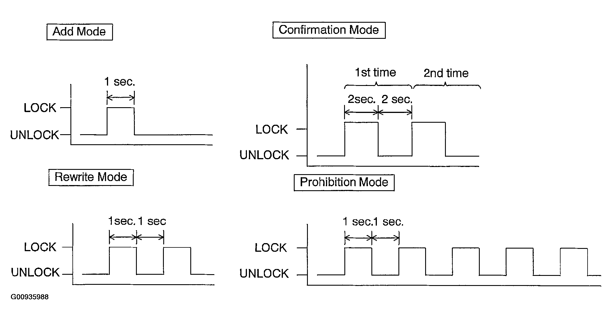 - When the confirmation mode has been selected and LOCK-UNLOCK operation has been performed twice as shown in Fig 3, the number of the registered recognition codes is 2.