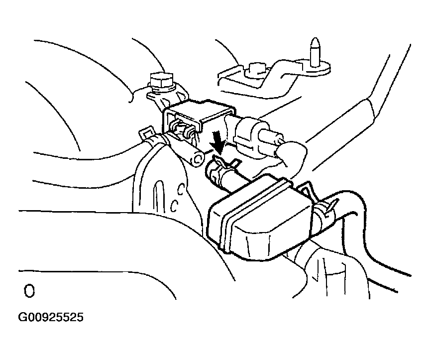 - Start the engine and disconnect the vacuum hose as shown in Fig 2 .