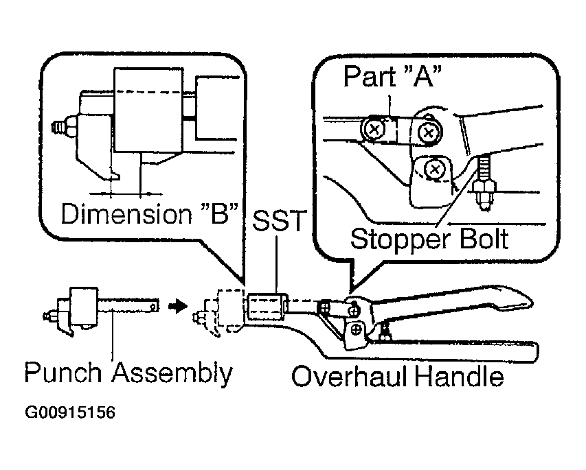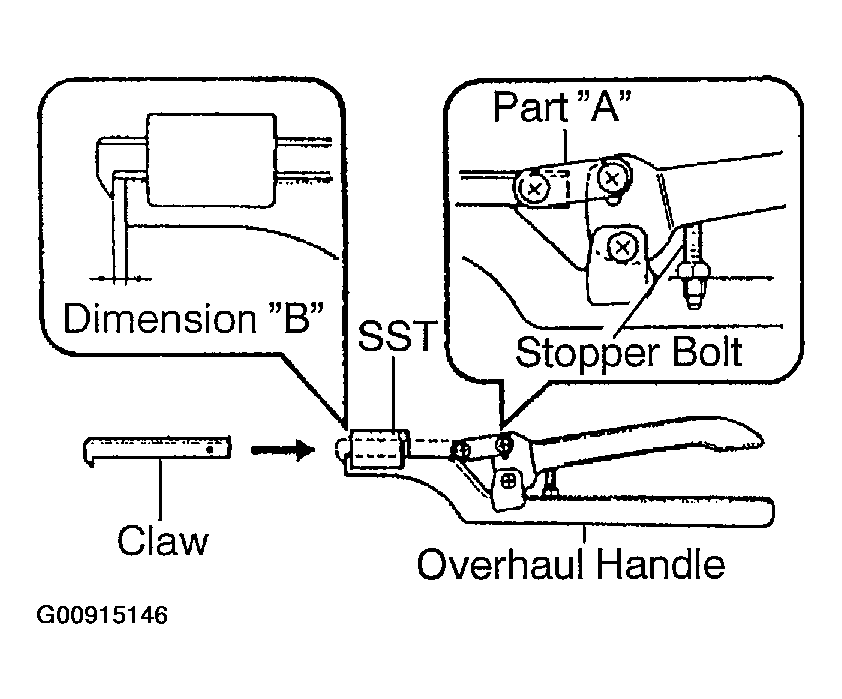 - While gripping the handle, adjust the stopper bolt so that dimension "B" is as shown in Fig 1
