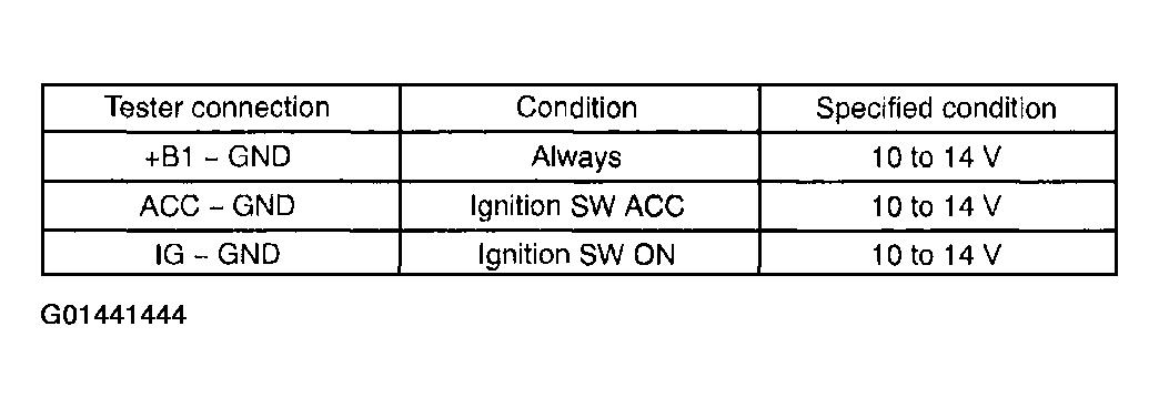OK: PROCEED TO NEXT CIRCUIT INSPECTION SHOWN IN PROBLEM SYMPTOMS TABLE OR DIAGNOSTIC TROUBLE CODE CHART (SEE PROBLEM SYMPTOMS TABLE or DIAGNOSTIC TROUBLE CODE CHART )