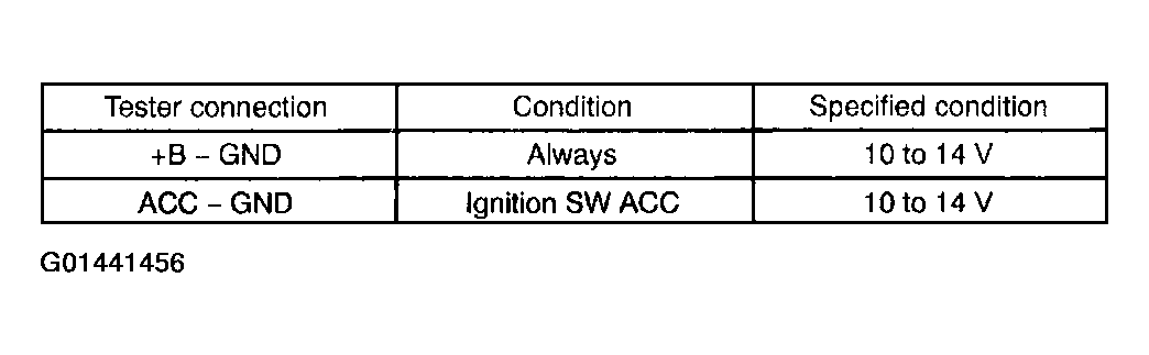 - INSPECT RADIO RECEIVER ASSY (+B, ACC, GND)
