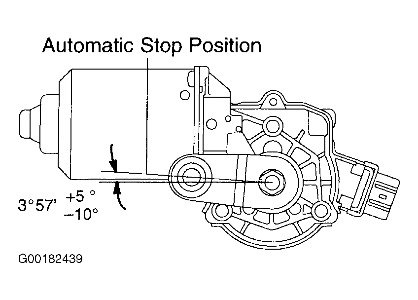 - Check the automatic stop operation as follows. Connect the battery (+) to terminal No. 1 (+1) of the connector, the battery (-) to terminal No. 5 (E) of the connector. With the motor being rotated at low speed (LO), disconnect terminal 1 (+1) to stop the wiper motor operation at any position except the automatic stop position. Using a Diagnosis Check Wire (SST 09843-18020), connect terminal No. 1 (+1) and No. 3 (S) and the battery (+) to terminal No. 2 (B) to restart the motor operation at low speed. Check the automatic stop position. See Fig 1. Replace wiper motor as necessary.